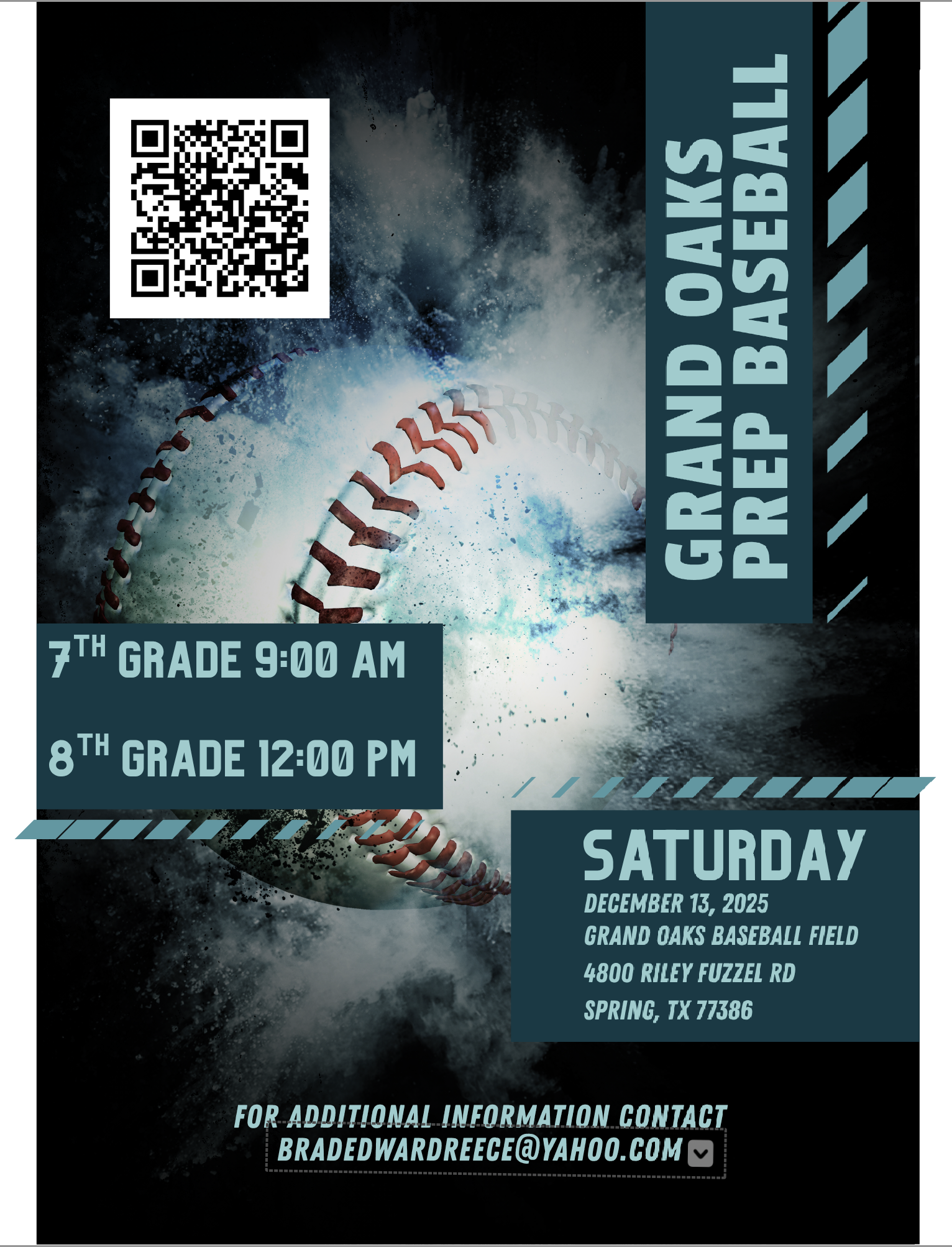 LOCATION: Grand Oaks High School baseball field, 4800 Riley Fuzzel Rd, Spring, TX 77386