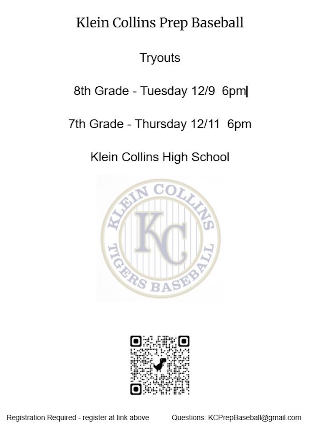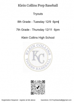 Tryouts will be for all 7th, and 8th graders zoned to attend Klein Collins High School.