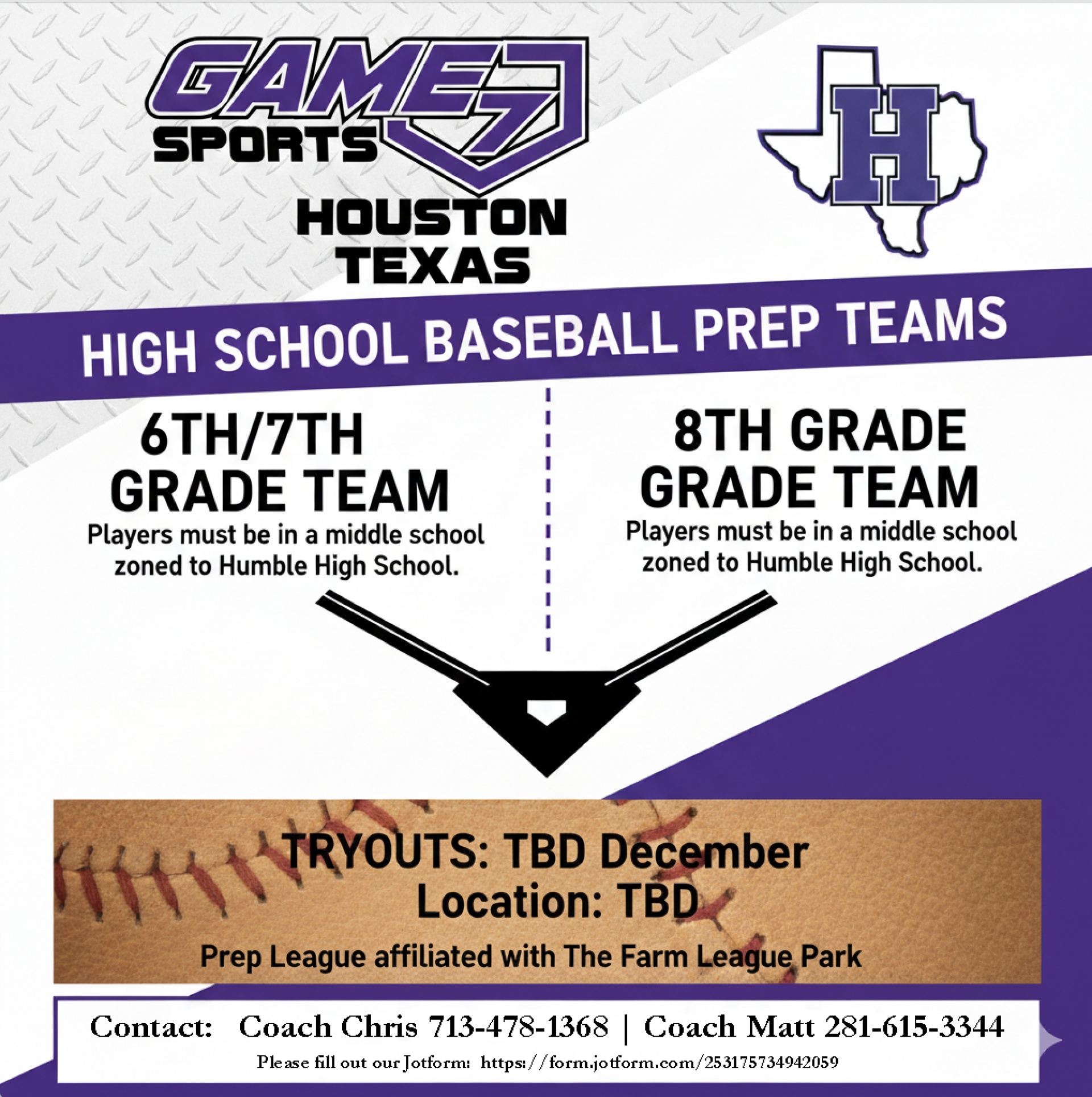 CONTACT: Coach Chris @ 713-478-1368 or Coach Matt @ 281-615-3344